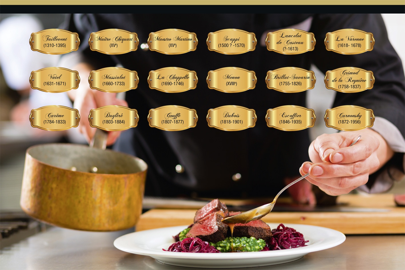 Une galerie des grands chefs qui ont contribué à forger la gastronomie française et européenne au fil des siècles. Saveurs d’Histoire vous convie à une épopée gourmande de plus de 600 ans qui met à l’honneur ses chefs stars de l’histoire qui ont su nous laisser par leurs ouvrages et leurs talents, un héritage d’exception.