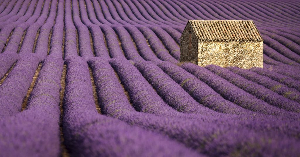 Aux détours des « routes de la lavande » s’étalent des champs aux bleus violacés infinis offrant au regard des paysages grandioses. Évoquée par Pline et utilisée dès l’antiquité pour embaumer les belles villas romaines, la lavande aurait été une composante des philtres d’amour au moyen- âge (Lavendula). Plus tard, ses propriétés antiseptiques ont contribué à se préserver des grandes épidémies de la peste provençale de 1720. Au XVIIIe siècle la lavande connaîtra un essor plus industriel avec la mode des cuirs parfumées lancée à Grasse. Avec la corporation des maîtres parfumeurs la demande de lavande se démultiplie. Les colporteurs du XIXe diffusent les fioles d’huile essentielle jusqu’en Europe du Nord. Aujourd’hui ses vertus bienfaisantes et apaisantes sont reconnues et largement déclinées (tisanes, cosmétiques).